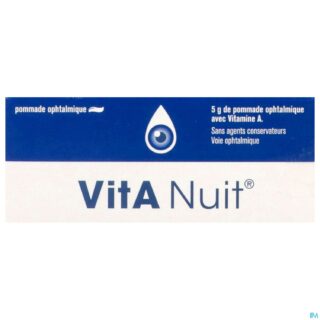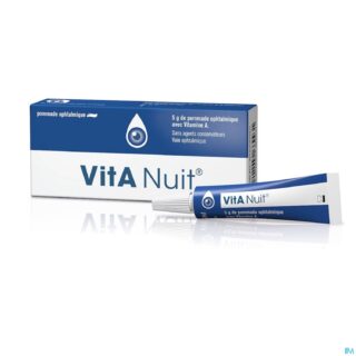 1 g de VitA Nuit® contient de la vitamine A, 250 U.I de rétinol palmitate, de la paraffine liquide et de la paraffine liquide légère, de la graisse de laine et de la vaseline blanche. Un tube contient 5 g de pommade ophtalmique.