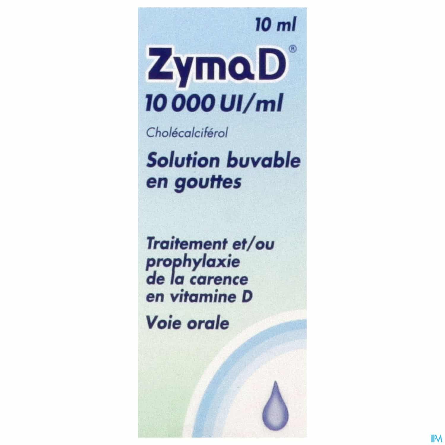 ZymaD 10 000 Ul/ml est une solution buvable en gouttes indiquee dans le traitement et/ou la prevention d'une carence en vitamine D.